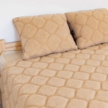 A warm and breathable blanket made from a blend of camel and sheep wool provides comfort and maintains the ideal temperature all year round. The stylish embossed pattern makes it not only practical but also a beautiful addition to your interior, bringing extra style and coziness to your bedroom.